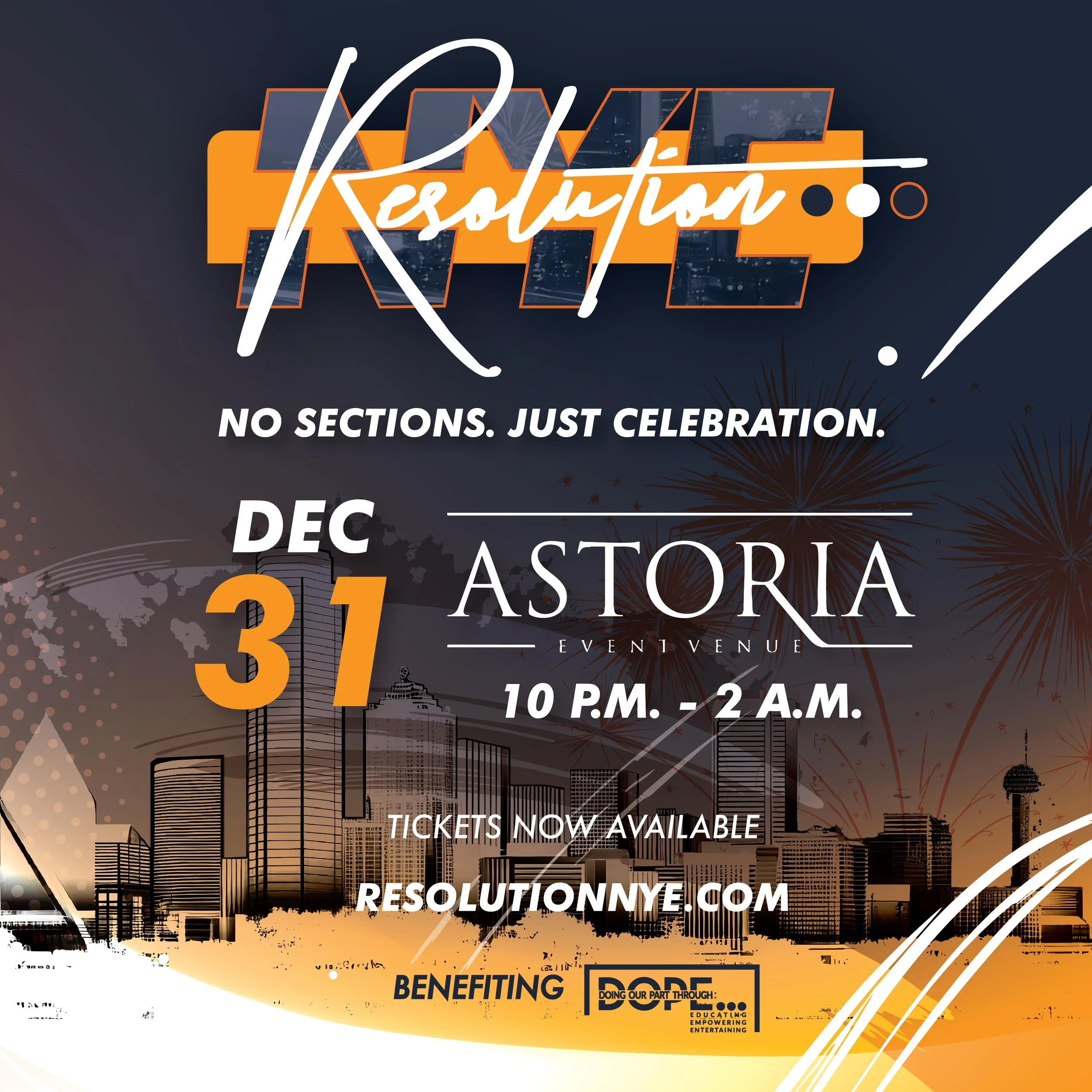 A high-energy NYE celebration at Astoria Event Venue. Not your typical Dallas NYE. No sections. No bottle service. Just celebration.